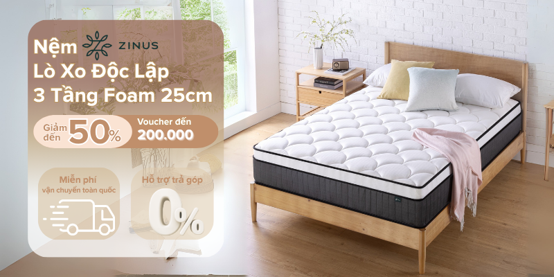 Xem ngay tại: https://zinus.vn/collections/tat-ca-san-pham-giam-den-70 Duy nhất chỉ trong Tháng 4, Zinus Việt Nam GIẢM ĐẾN 60% tất cả sản phẩm nệm lò xo độc lập, nệm foam cao su non,...