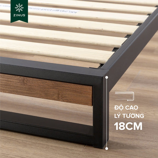Giường Khung Sắt Với Thanh Chắn Bằng Gỗ Tre - Zinus Kai Bamboo and Metal Platform Bed Frame with Headboard